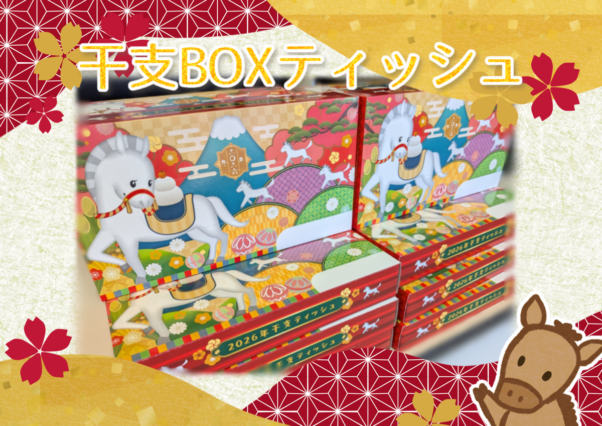 SHOPでは只今【干支ボックスティッシュ】を販売中でございます。